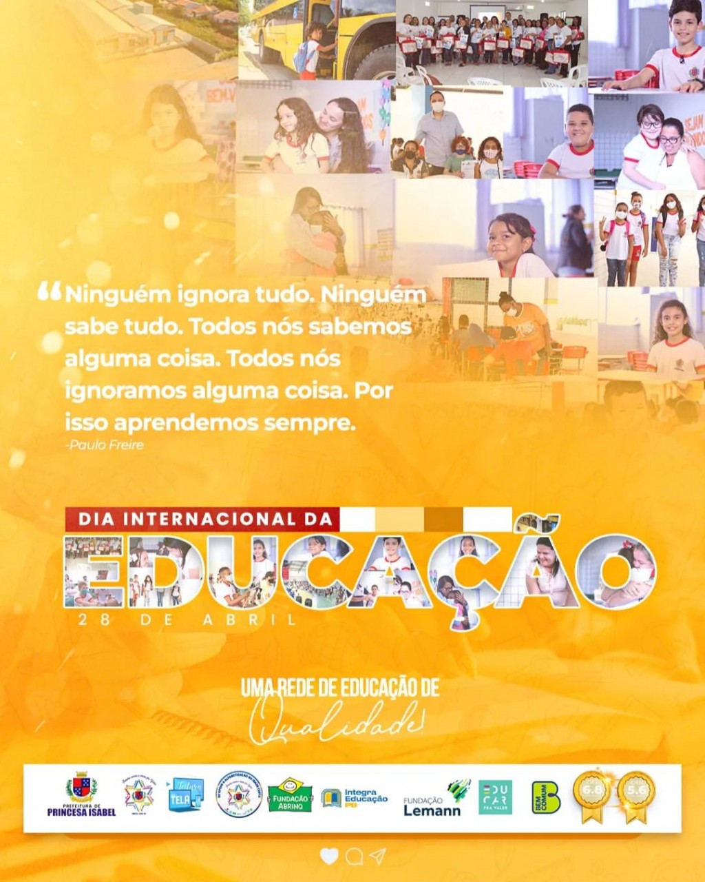 No Dia Internacional da Educação, todos os nossos aplausos e agradecimentos aos que fazem a educação de Princesa.