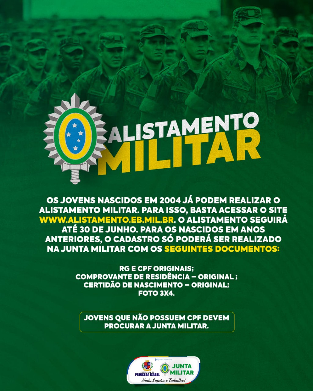 A Junta de Serviço Militar está funcionando em novo endereço, no Centro Administrativo Municipal, na Avenida Presidente João Pessoa.