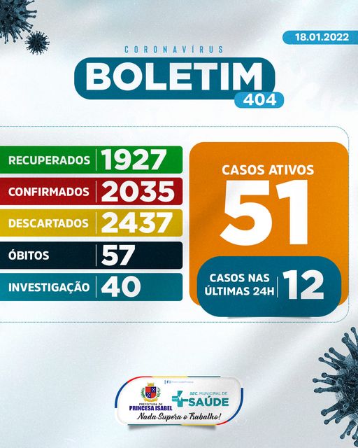 O Comitê Gestor da Crise COVID-19, em Princesa Isabel, informa: