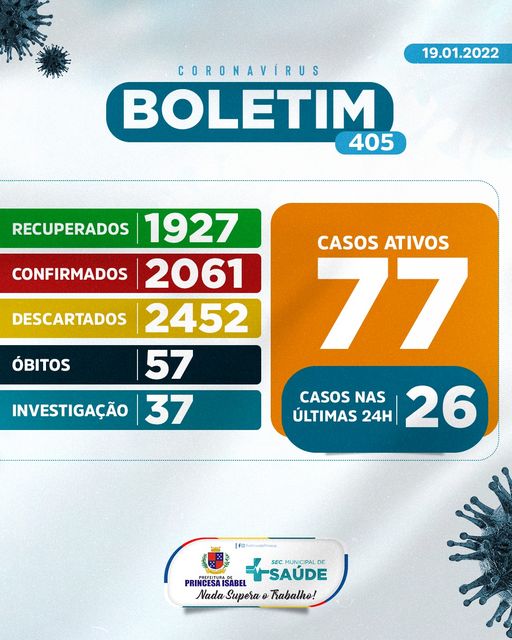 O Comitê Gestor da Crise COVID-19, em Princesa Isabel, informa: