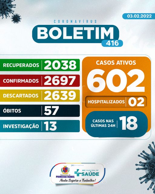 O Comitê Gestor da Crise COVID-19, em Princesa Isabel, informa: