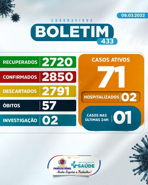 O Comitê Gestor da Crise COVID-19, em Princesa Isabel, informa: