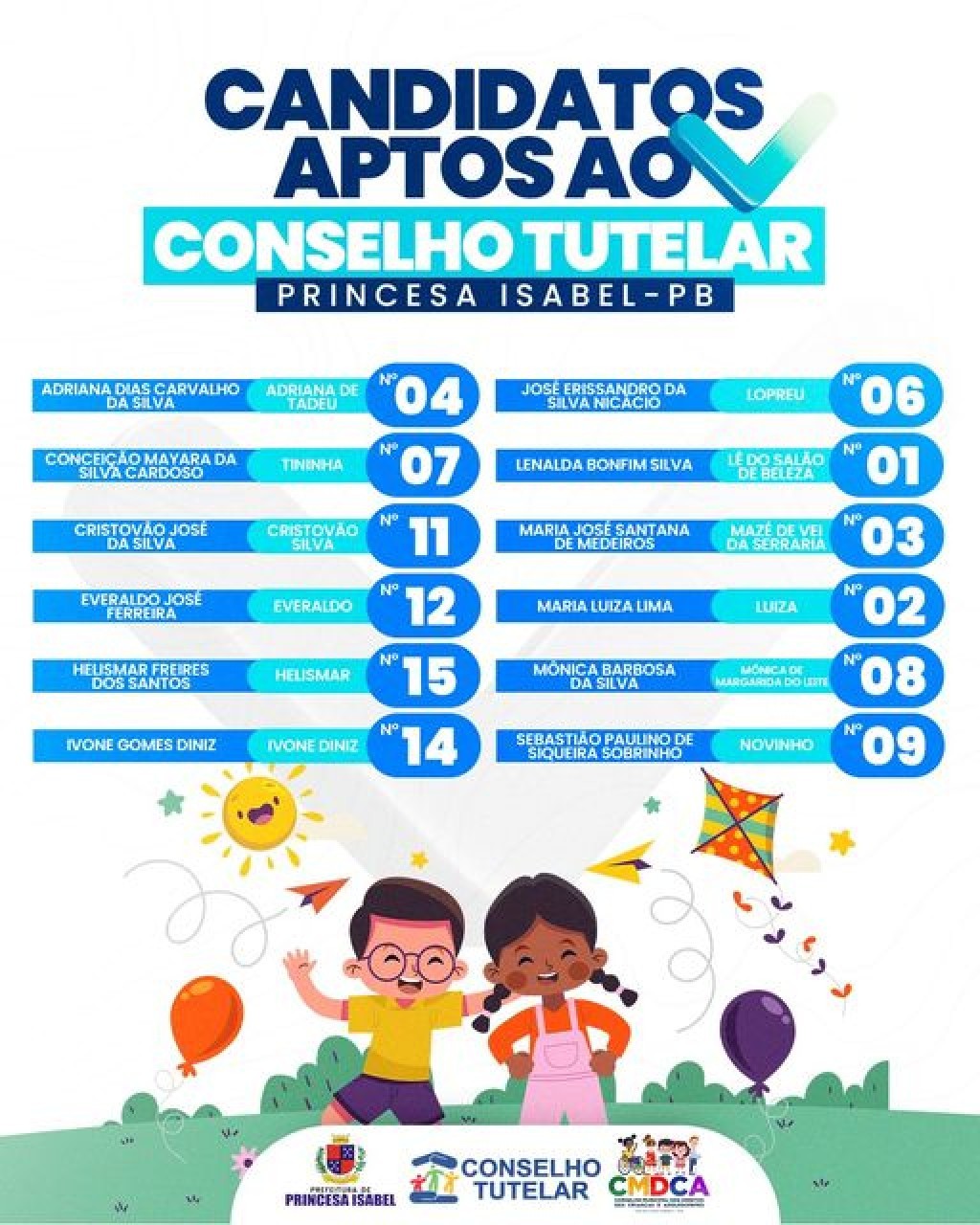 Confira os nomes dos candidatos aptos a concorrerem às eleições para o Conselho Tutelar em nosso município!
