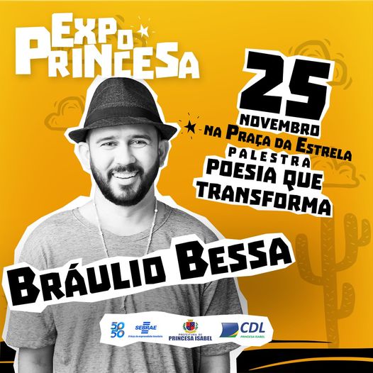 Fazendo parte da programação do 2ª Expo Princesa, o cordelista Bráulio Bessa estará em Princesa no próximo dia 25, com a palestra: Poesia que transforma, na praça da Estrela.