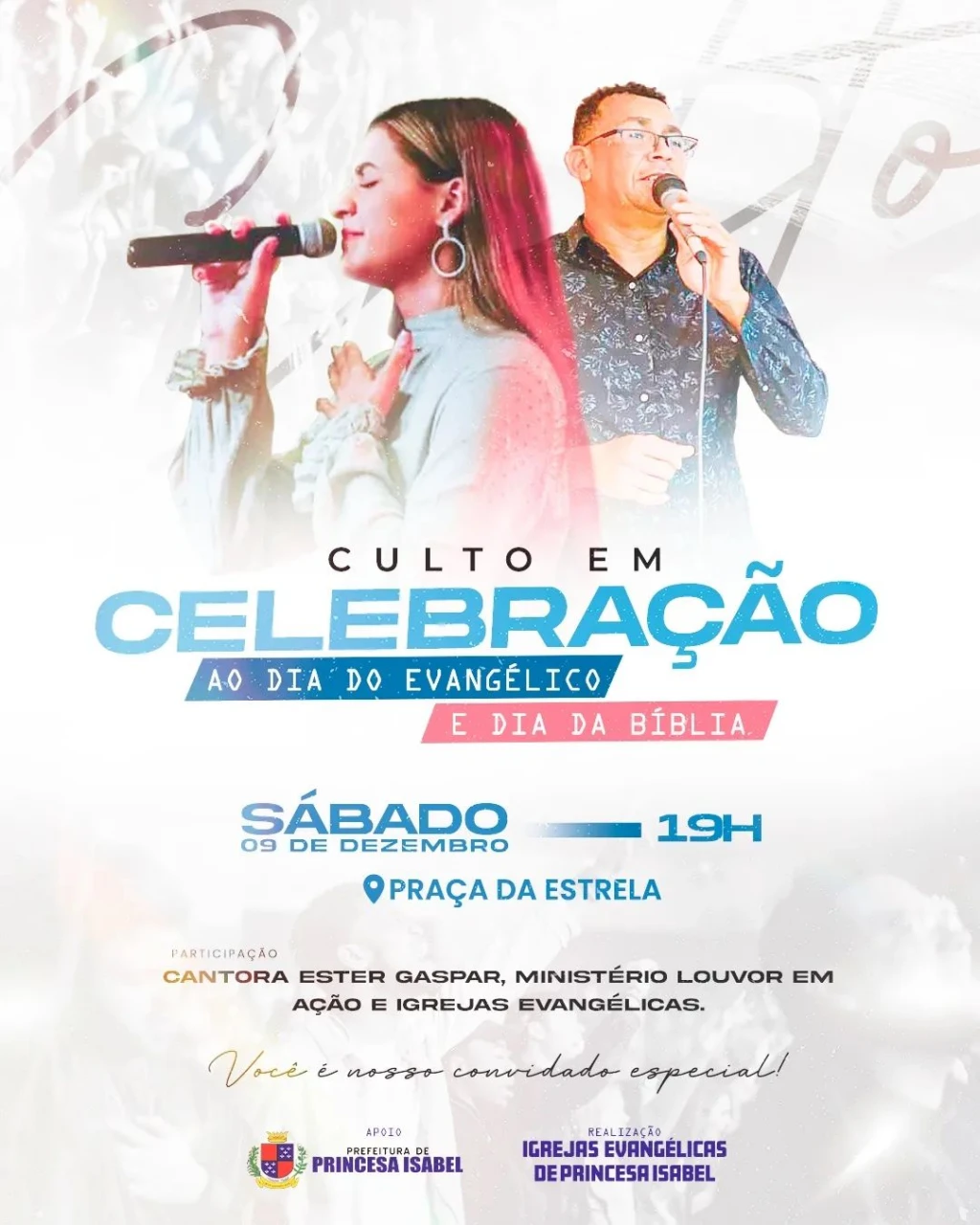 Celebração ao dia do Evangélico e dia da Bíblia.Sábado às 19 horas, na praça da Estrela.