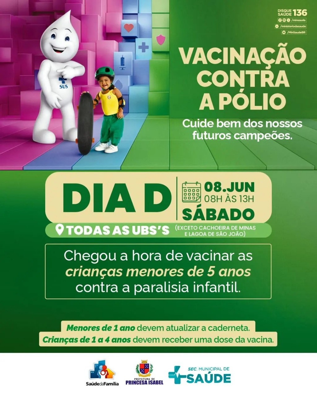 Amanhã é Dia D de vacinação para as nossas crianças. Proteja quem você ama!