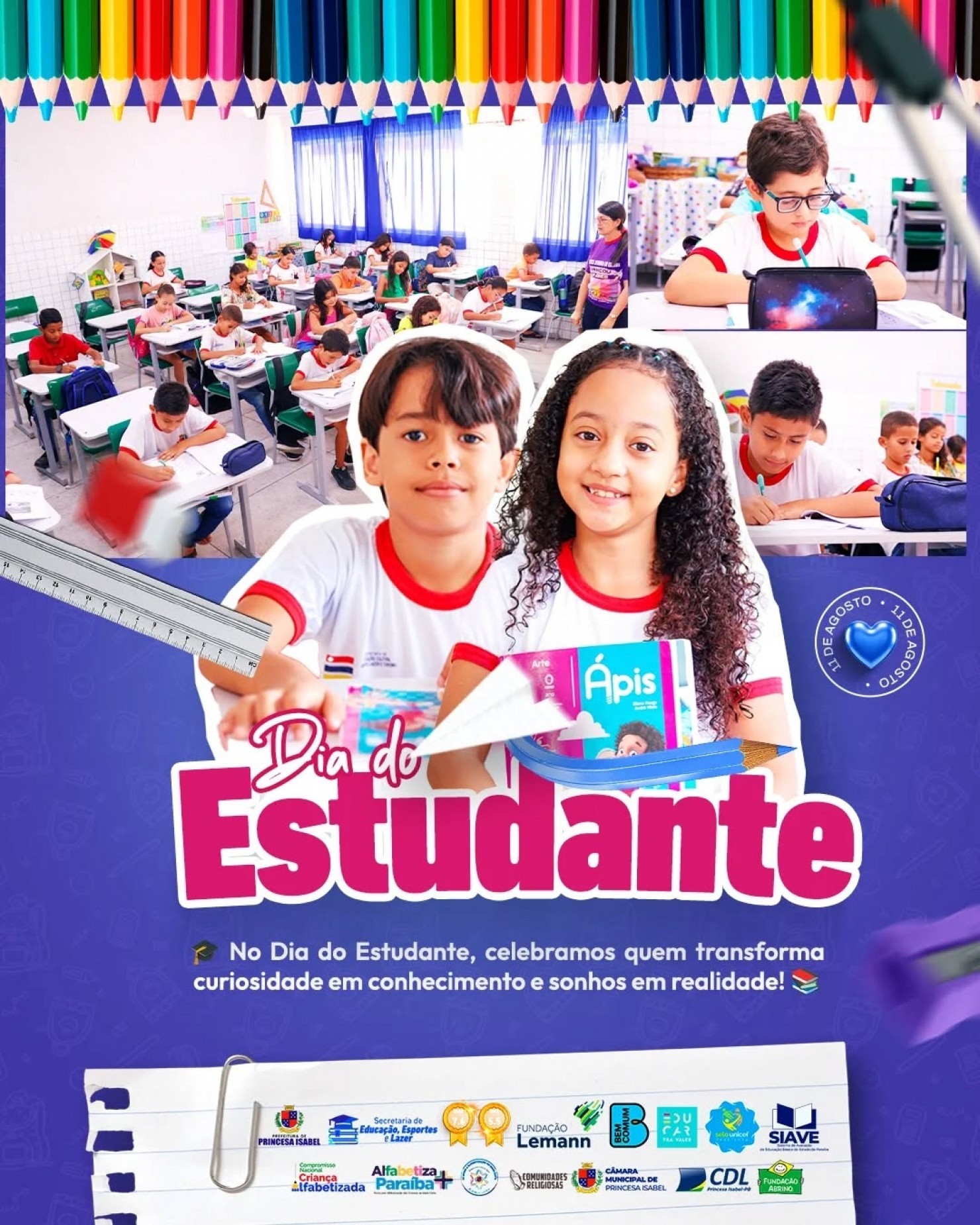 Neste Dia do Estudante, celebramos a dedicação, a curiosidade e a vontade de aprender que transformam sonhos em realidade. Vocês são a inspiração para um futuro melhor, pois cada lição aprendida é um passo rumo às grandes conquistas.