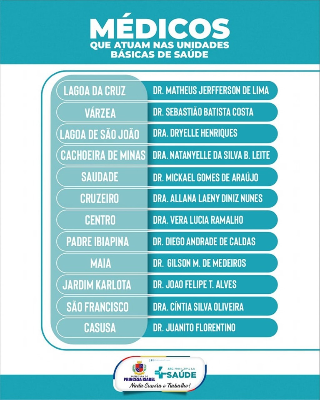 Confira os médicos que atuam em cada UBS!