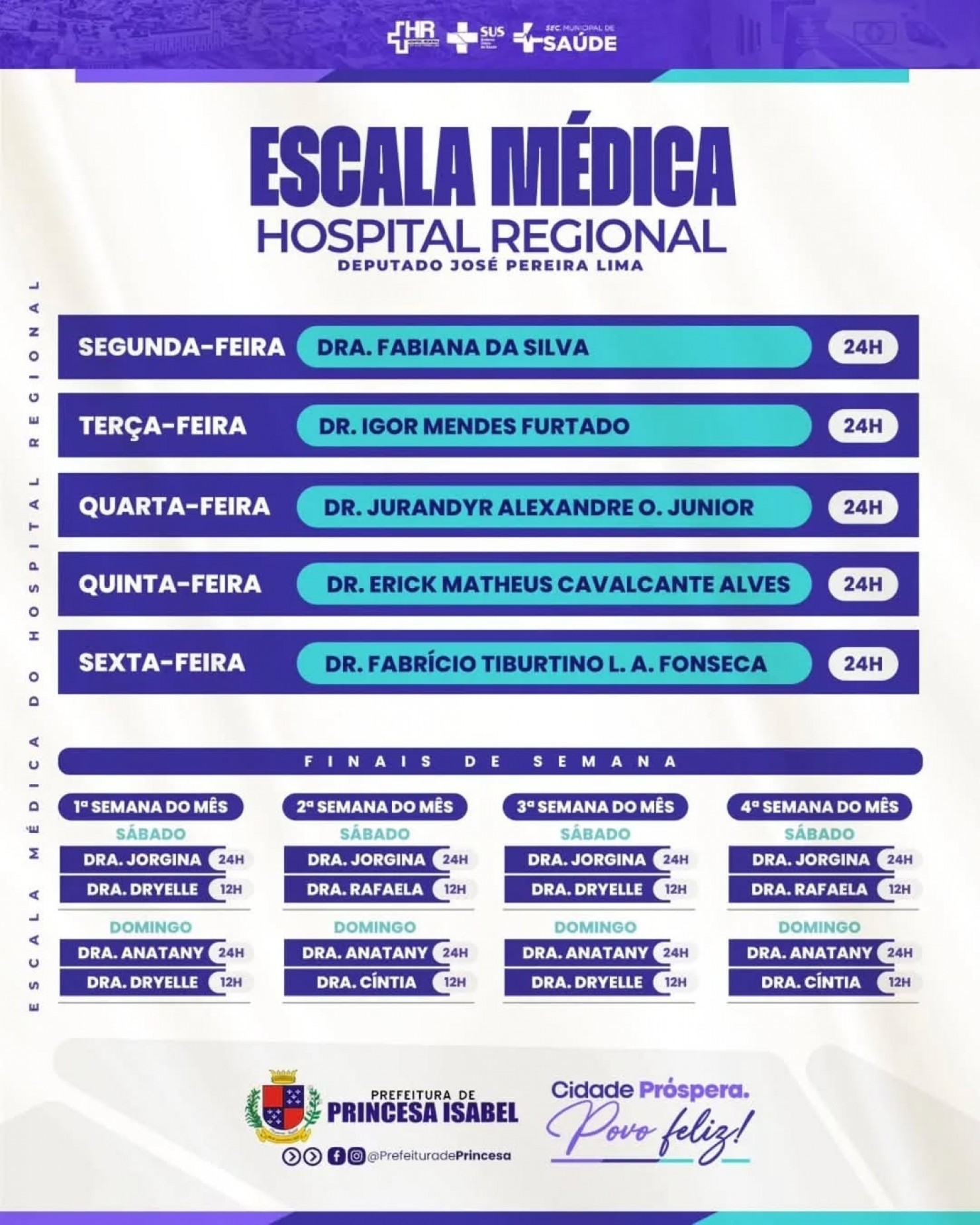 Confira a escala médica do Hospital Regional Deputado José Pereira Lima!