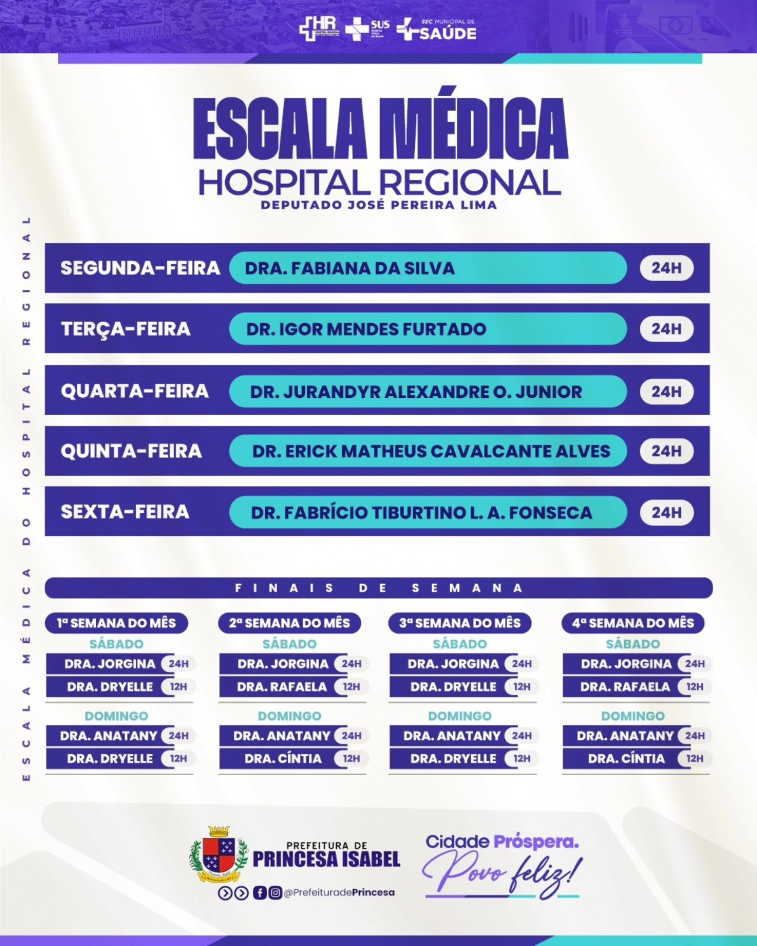 Confira a escala médica do Hospital Regional Deputado José Pereira Lima