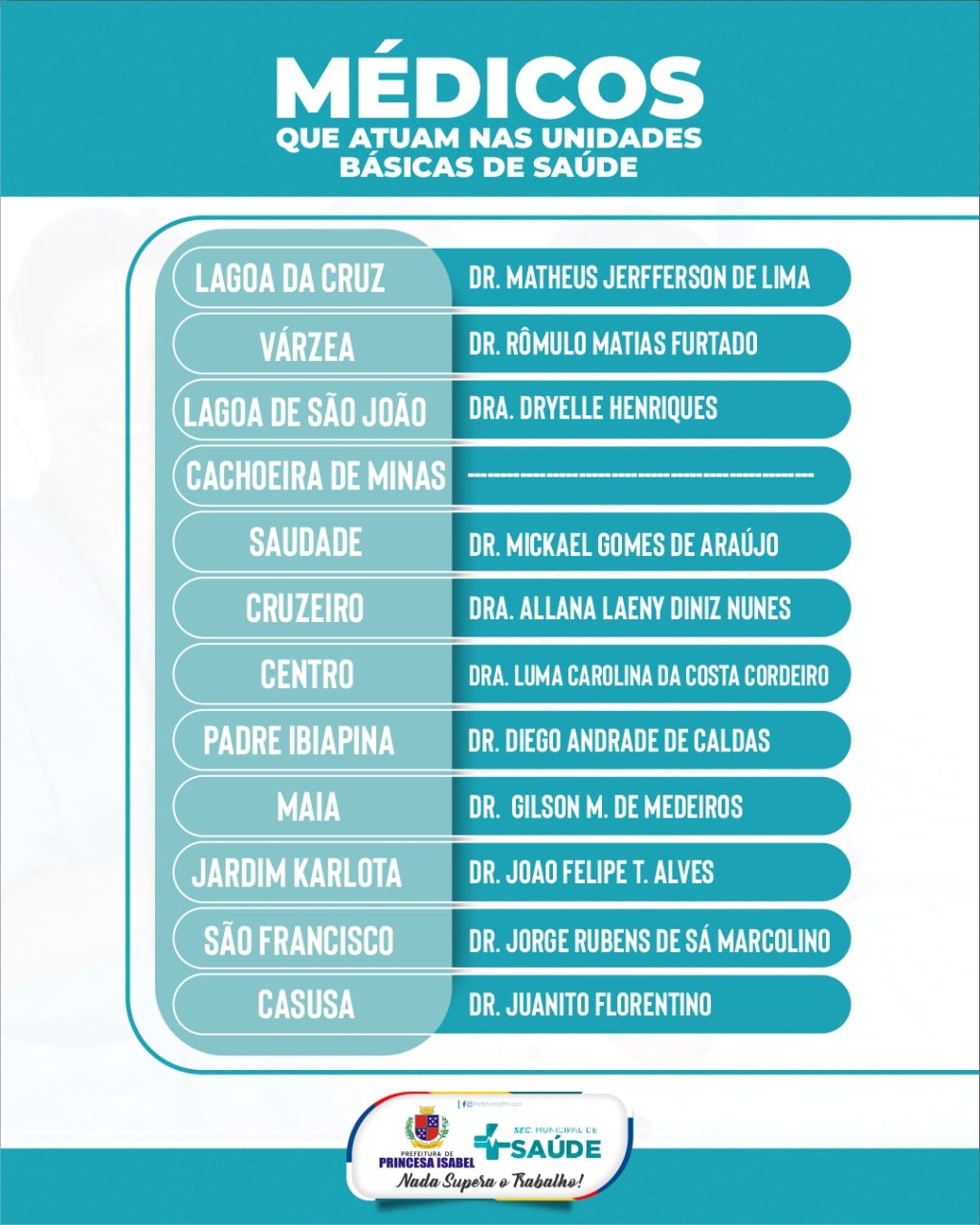 Confira os médicos que atuam em nossa Unidades Básicas de Saúde!