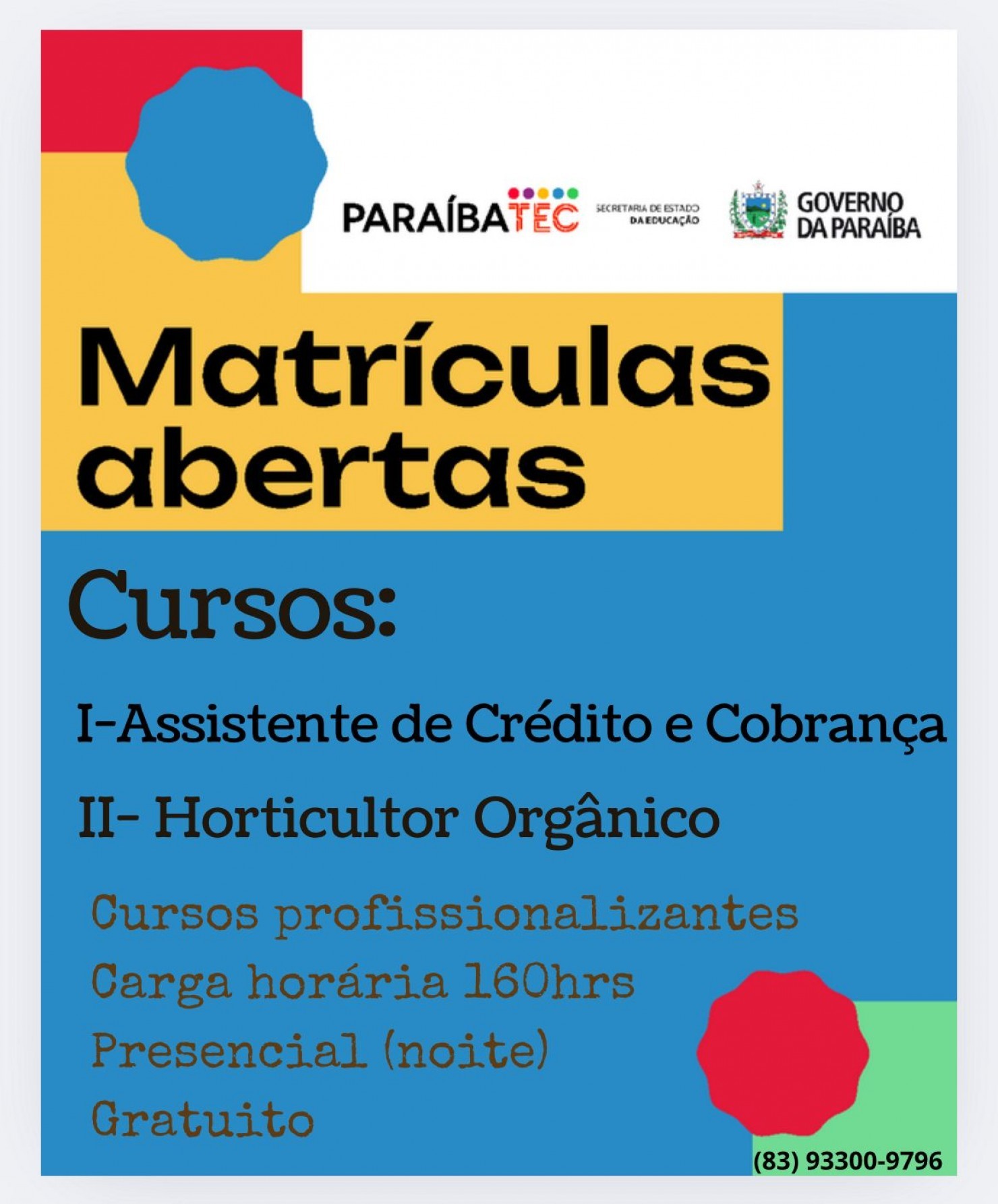 Informações: (83)93300-9796