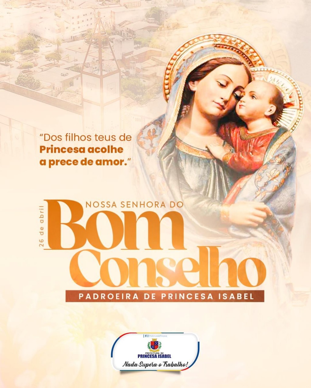 Que Nossa Senhora do Bom Conselho proteja todos os princesenses com o seu manto sagrado, acolha todas as preces e interceda por cada um de seus filhos junto a Jesus Cristo.
