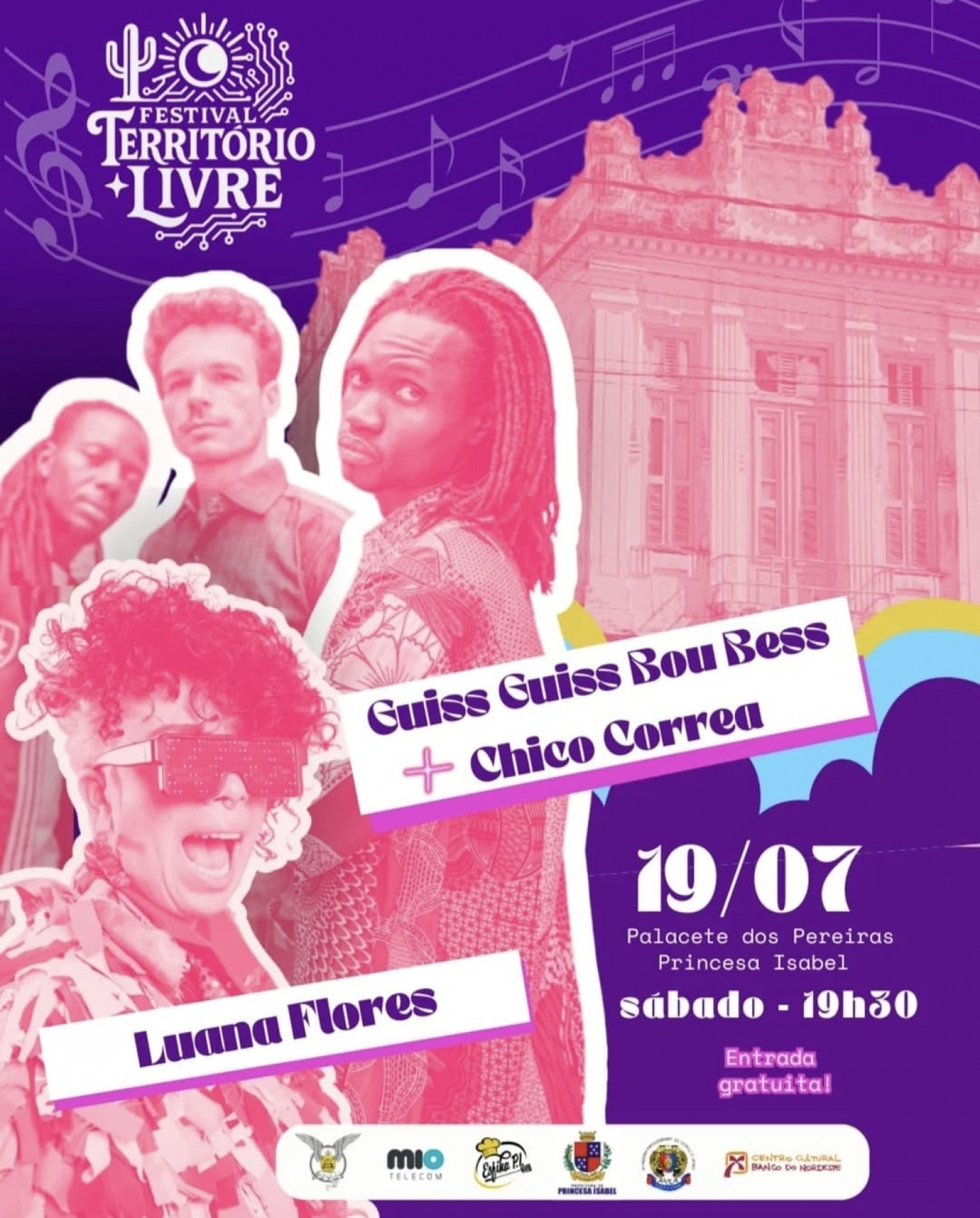 Neste sábado, 19 de julho, a partir das 19h30, o Palacete dos Pereiras será palco de um grande encontro cultural com shows de Guiss Guiss Bou Bess + Chico Correa e Luana Flores!