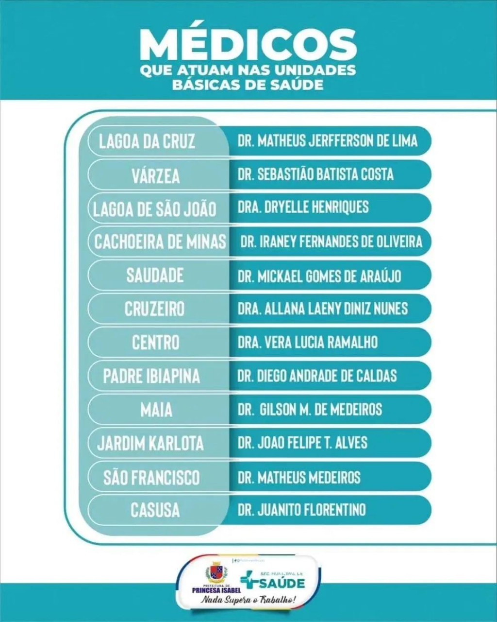 Temos 11 Unidades Básicas de Saúde, todas elas com atendimento médico e multiprofissional. Confira os médicos que atuam em cada uma delas!
