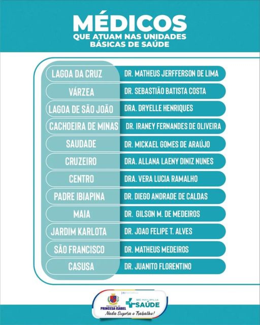 Temos 11 Unidades Básicas de Saúde, todas elas com atendimento médico e multiprofissional. Confira os médicos que atuam em cada uma delas!