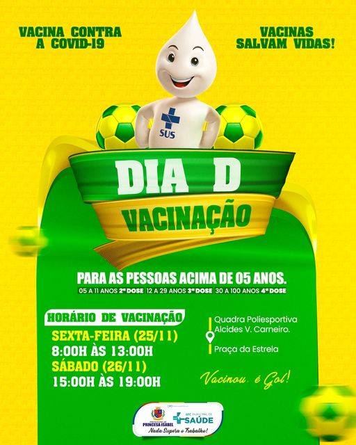 Nesta sexta e sábado (25 e 26), na quadra poliesportiva Ministro Alcides Vieira Carneiro. Atualize sua caderneta de vac