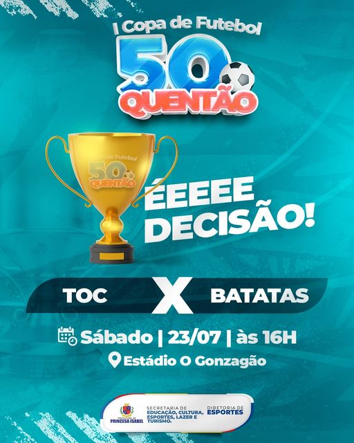 No próximo sábado (23) será a grande decisão da I Copa de Futebol Cinquentão, no estádio O Gonzagão.