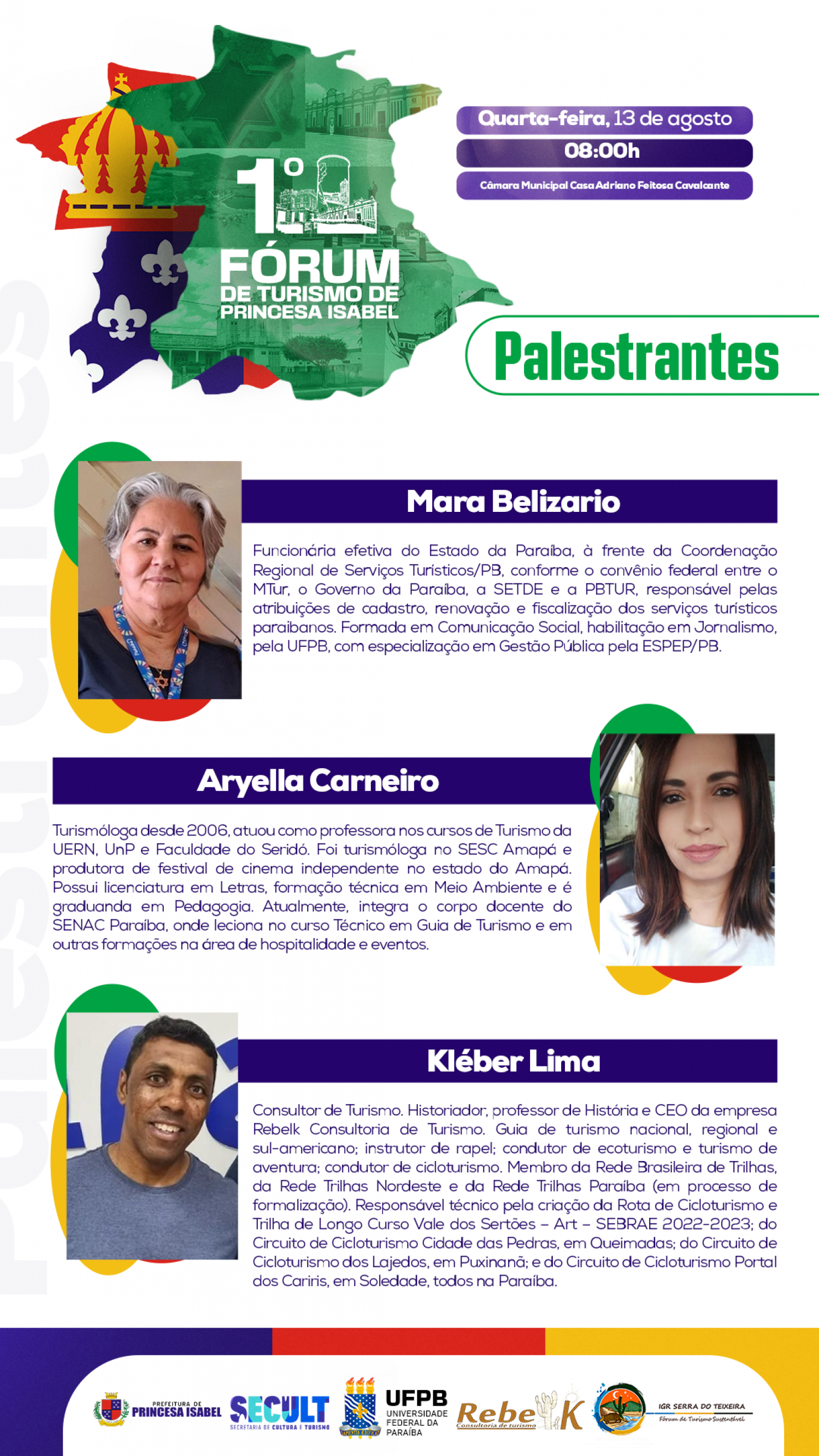 O Fórum de Turismo de Princesa acontecerá na próxima quarta-feira, 13 de agosto, a partir das 8h, na Câmara Municipal.
