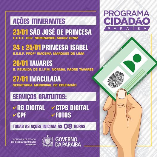 Na próxima semana acontece aqui em Princesa mais uma grande ação em parceria com o governo do estado da Paraíba. Se você precisa emitir algum desses documentos, fique atento às datas e aos documentos necessários.