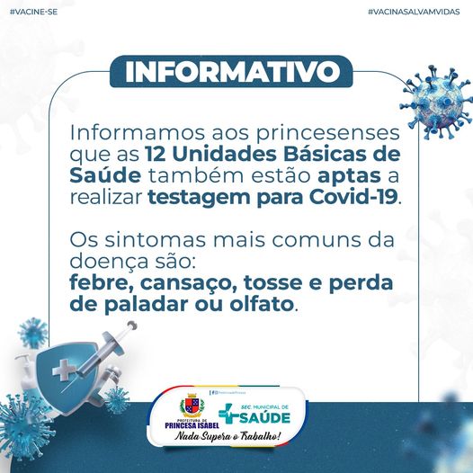 Em caso de sintomas, procure sua Unidade Básica de Saúde, Hospital Regional Deputado José Pereira Lima ou UPA-24h.