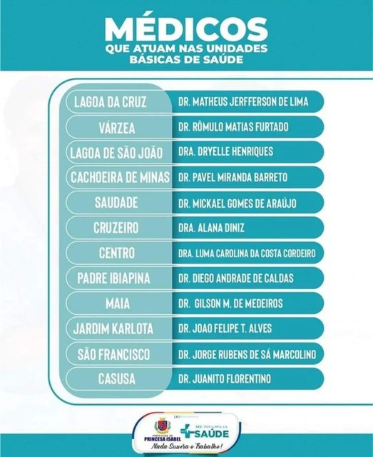 Estamos com 100% de cobertura médica nas nossas Unidades Básicas de Saúde. Confira!