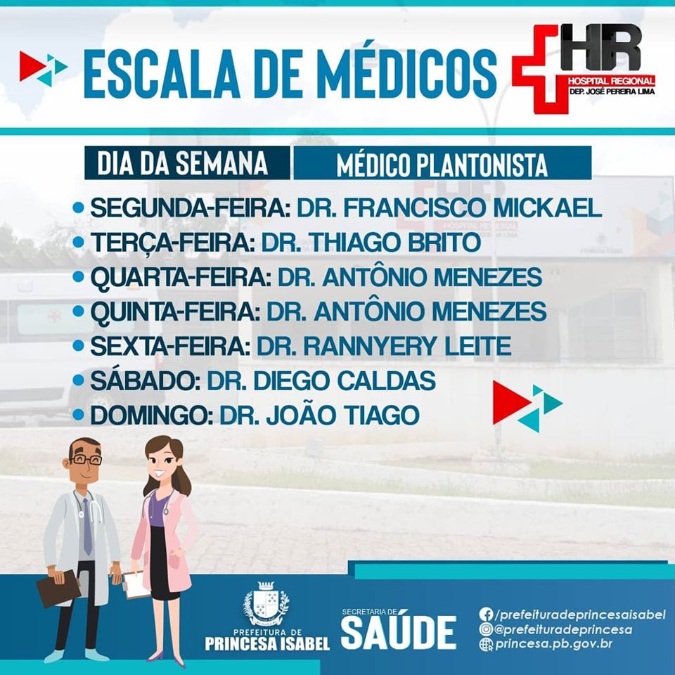 Escala semanal de médicos do Hospital Regional Deputado José Pereira Lima. Confira!