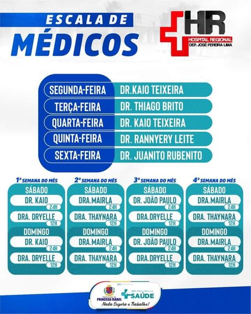 Confira a escala médica do Hospital Regional Deputado José Pereira Lima!