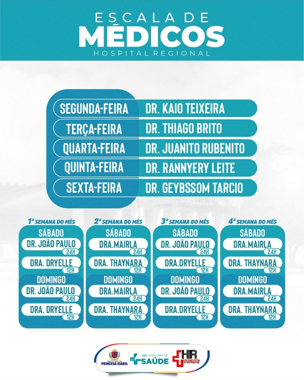 Confira a escala de médicos do Hospital Regional Deputado José Pereira Lima!