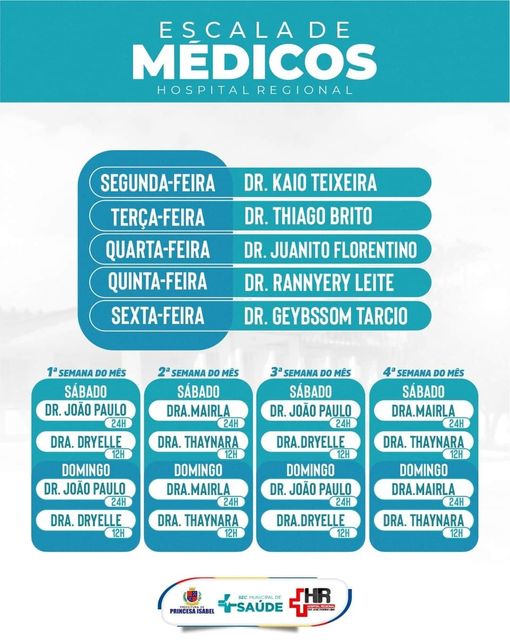 ESCALA DE MÉDICOS DO HOSPITAL REGIONAL
