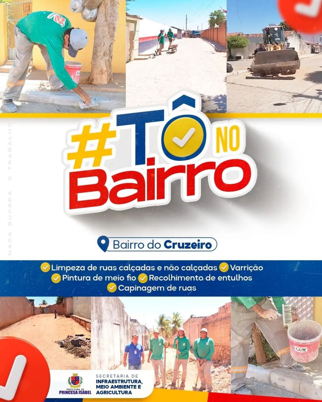 Com o objetivo de otimizar os serviços e melhorias estruturais nos bairros, o "Tô no Bairro" estará periodicamente desenvolvendo ações da Secretaria de Infraestrutura nos bairros da cidade e na zona rural. São inumeros serviços, como capinagem, troca de lâmpadas, limpeza, recolhimento de entulho e muito mais.
