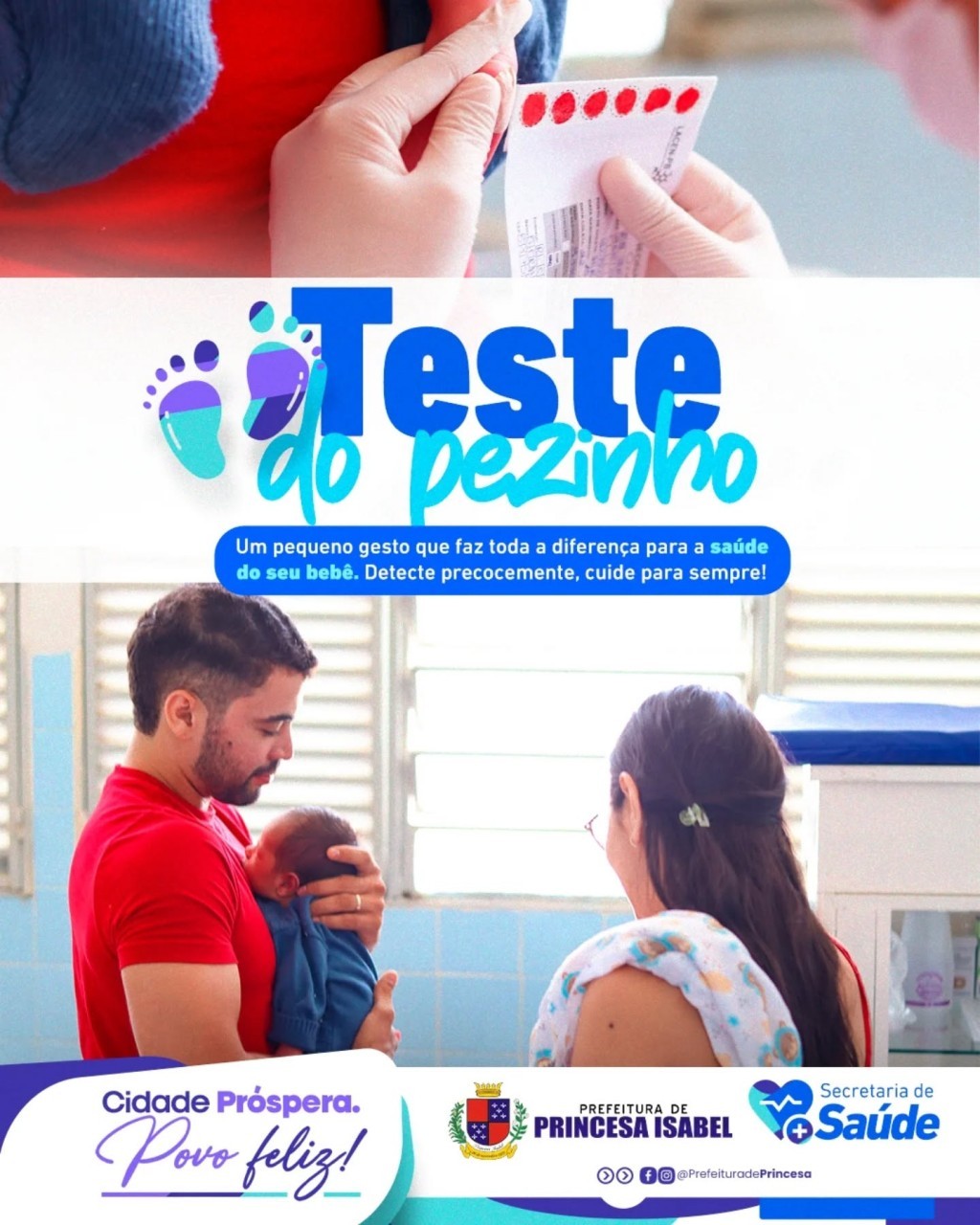 Em Princesa Isabel, os bebês que nascem no Hospital Regional Deputado José Pereira Lima, o HRPI, já saem com o teste do pezinho devidamente agendado, garantindo que essa etapa fundamental do cuidado neonatal seja realizada de forma organizada e dentro do prazo ideal. Essa prática facilita o acesso das famílias ao exame, contribui para o diagnóstico precoce de doenças e reforça o compromisso do município com a saúde e o bem-estar das crianças.