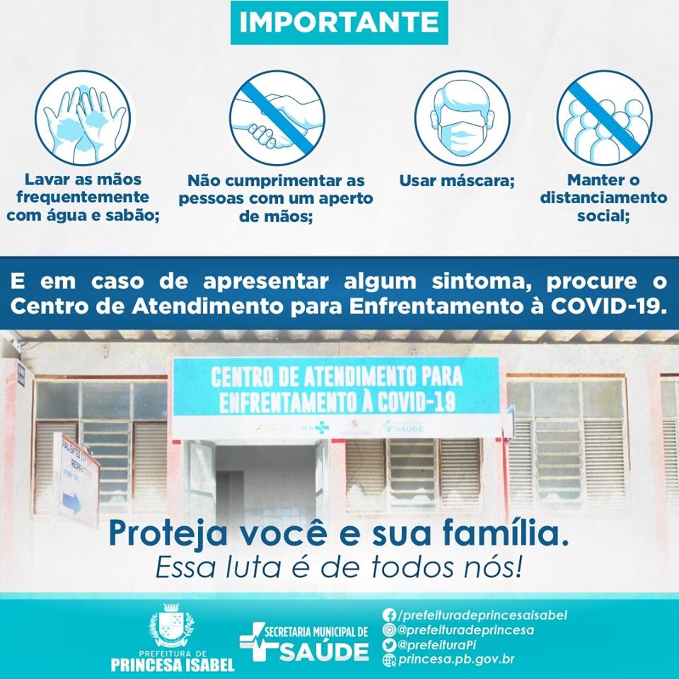 Com a flexibilização do comércio e de outros serviços, é necessário nos cuidarmos ainda mais. As medidas de prevenção e combate à disseminação do novo corona vírus são as mesmas: higienizar frequentemente as mãos com água e sabão, manter o distanciamento de outras pessoas, não cumprimentá-las com um abraço ou um aperto de mão, usar máscara e sair de casa apenas em casos de extrema necessidade. São ações simples, mas que podem salvar a sua vida e vida de muitos.